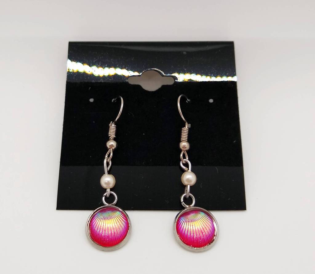 Dangle Shell Earrings Iridescent resin shells dangle below a cultured pearl. Related Type: Handmade Jewelry Leave a comment